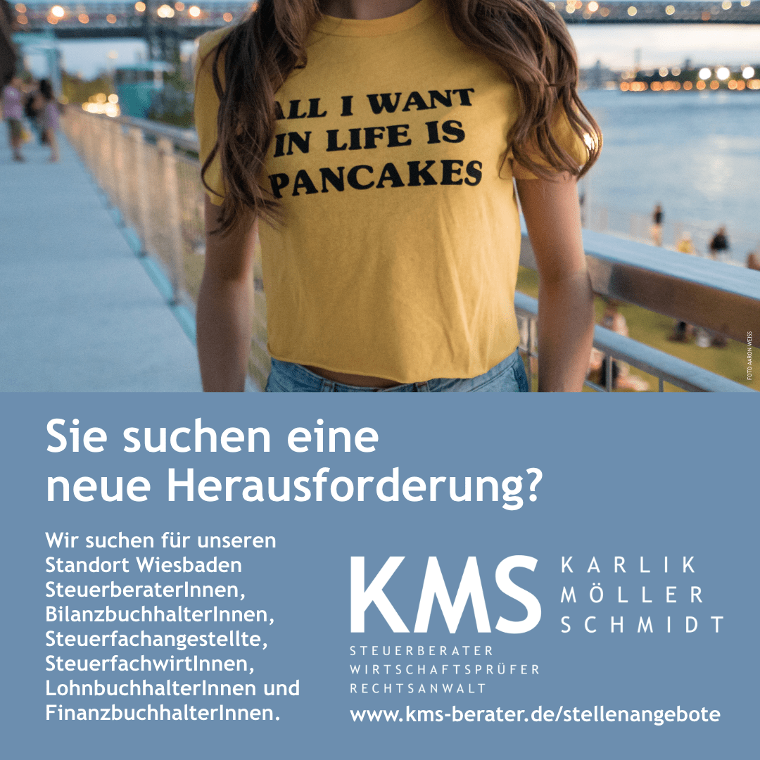 Social Media Kampagne im Auftrag der Wiesbadener Kanzlei KMS Steuerberater – Wirtschaftsprüfer – Rechtsanwalt. Kerninhalte: Die Gewinnung qualifizierter Fachkräfte im Bereich Steuerberatung und Wirtschaftsprüfung mit einer humorvollen und schnellen Ansprache. Die besondere Herausforderung: Der Arbeitsmarkt ist stark umkämpft, die Nachfrage nach hochspezialisiertem Personal übersteigt das Angebot. Hinzu kommt, dass Fachkräfte in diesem Bereich nicht aktiv auf Stellensuche sind, sondern gezielt angesprochen werden müssen. Fachkräfte im Fokus: Zielgerichtete Anzeigen auf Plattformen wie LinkedIn und Instagram mit Fokus auf Fachkräfte. Konzeption, Text und Design